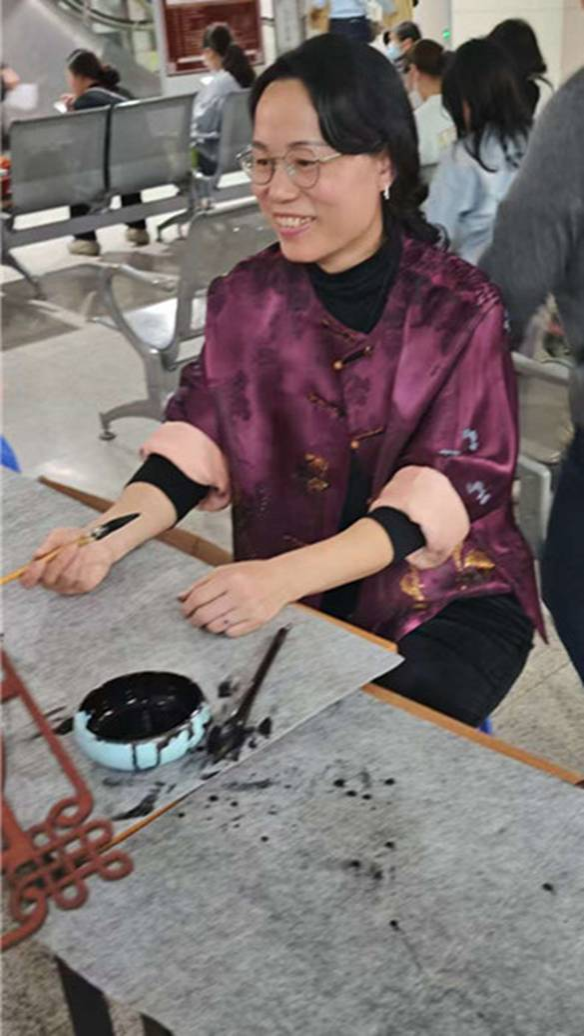 图8.金针护士长挥毫后愉快表情